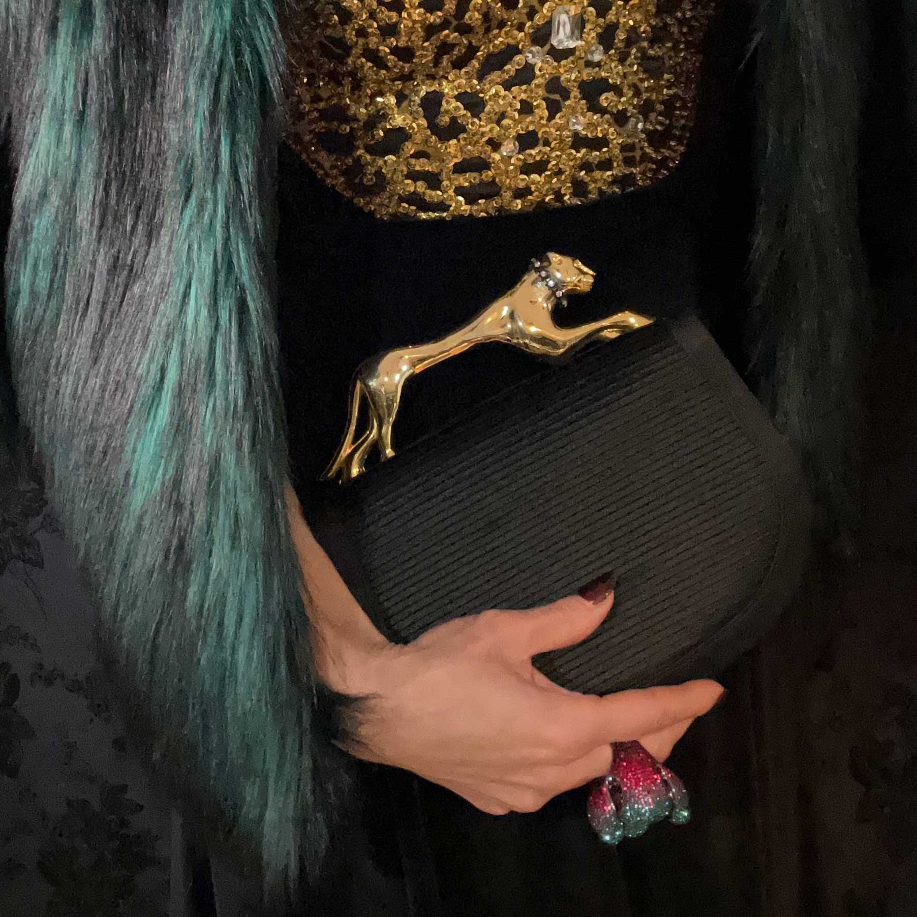 Cats were enthusiastically idolized in Ancient Egypt, with an array of feline goddesses representing strength, justice, fertility and motherhood. The cat motif commonly appeared in sculptures and bodily adornments, often gilded or bejeweled, to protect and embolden the people they surrounded. Bold is how you will feel with this stunning vintage bag. Its sleek lines and powerful feline energy have a magical quality that transcends time.