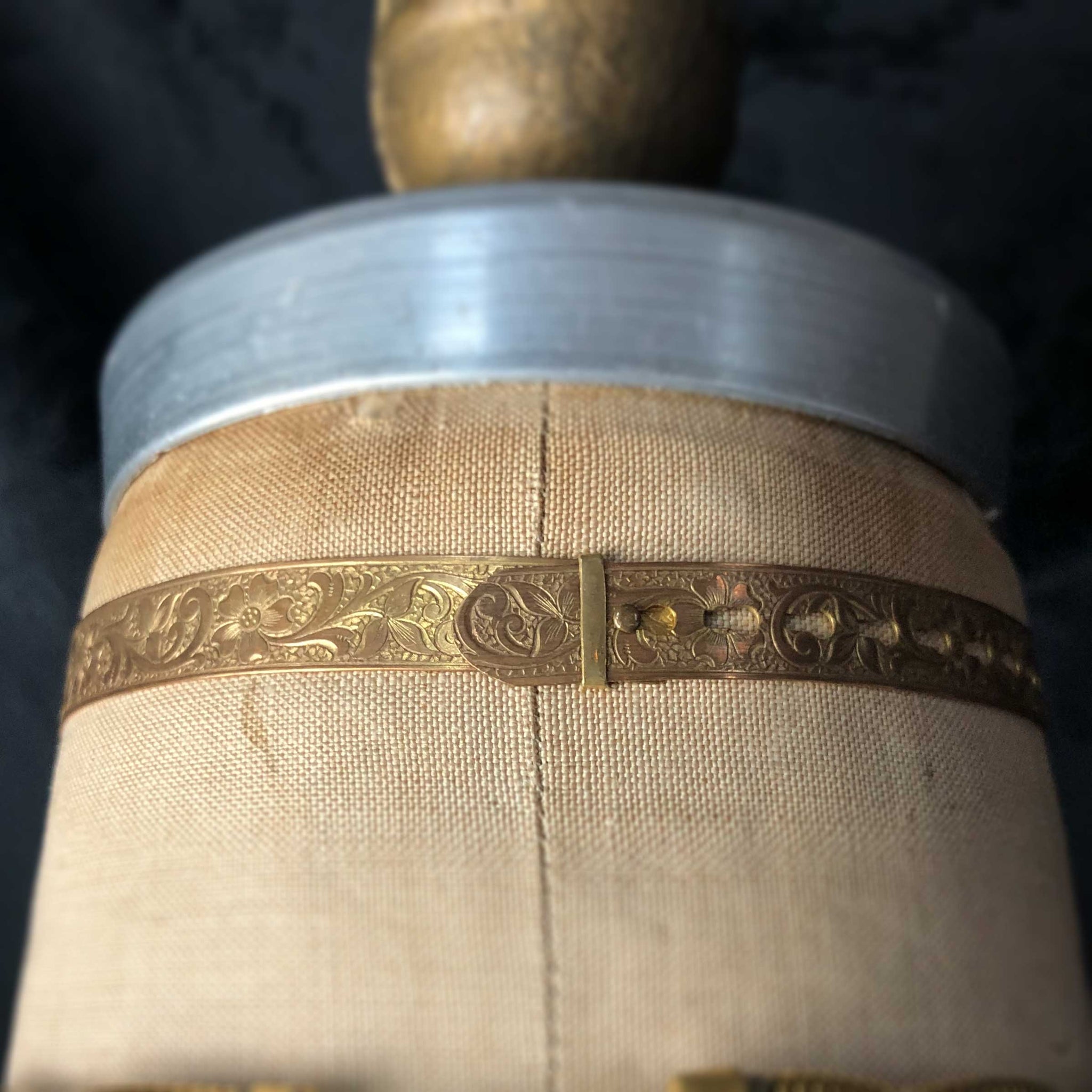 Gilt metal and crystals, estimated late 1800s. Wearable at 11-13 inches. Some wear to gilding. Crystals are intact without chips. One of our very favorite finds.