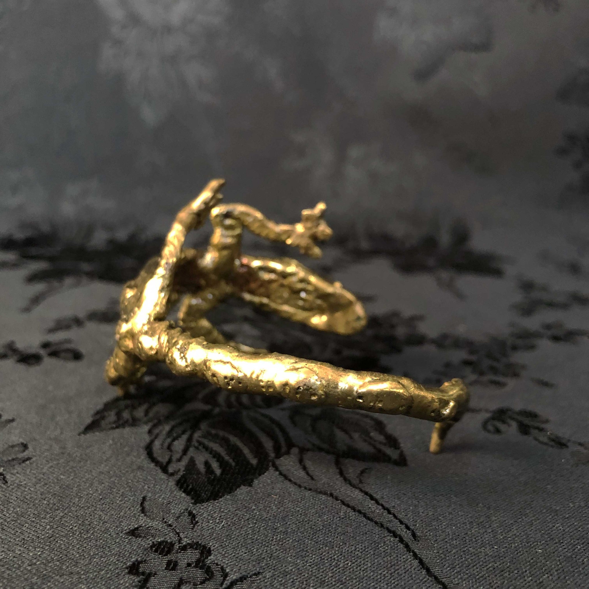 Vintage metal. Unknown maker. Fabulous design! Measures 7" inner circumference, with a 1.5" opening to squeeze through.