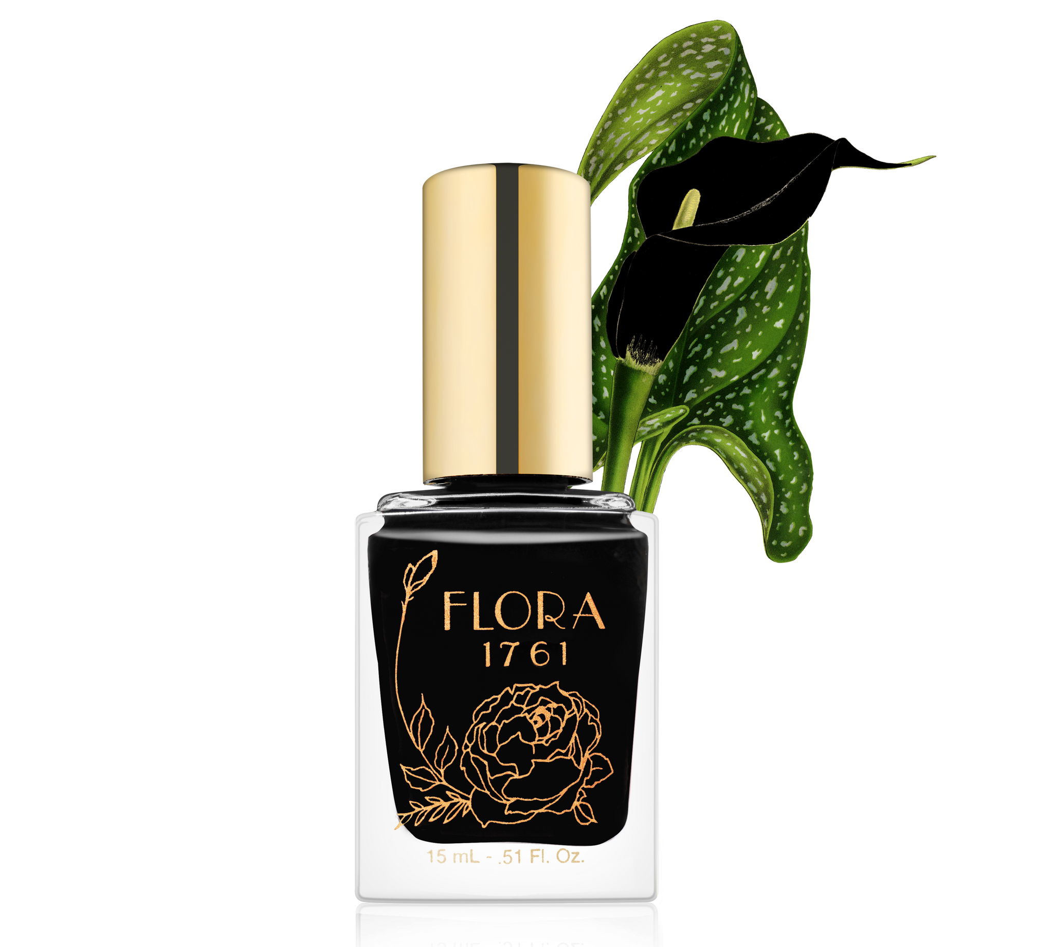 Being an incredibly rare flower, the black calla lily signifies mystery and decadence.  This full-coverage jet black lacquer, inspired by the Odessa calla varietal, is the epitome of a no-nonsense nail look, perfect for a simple statement that packs a punch.