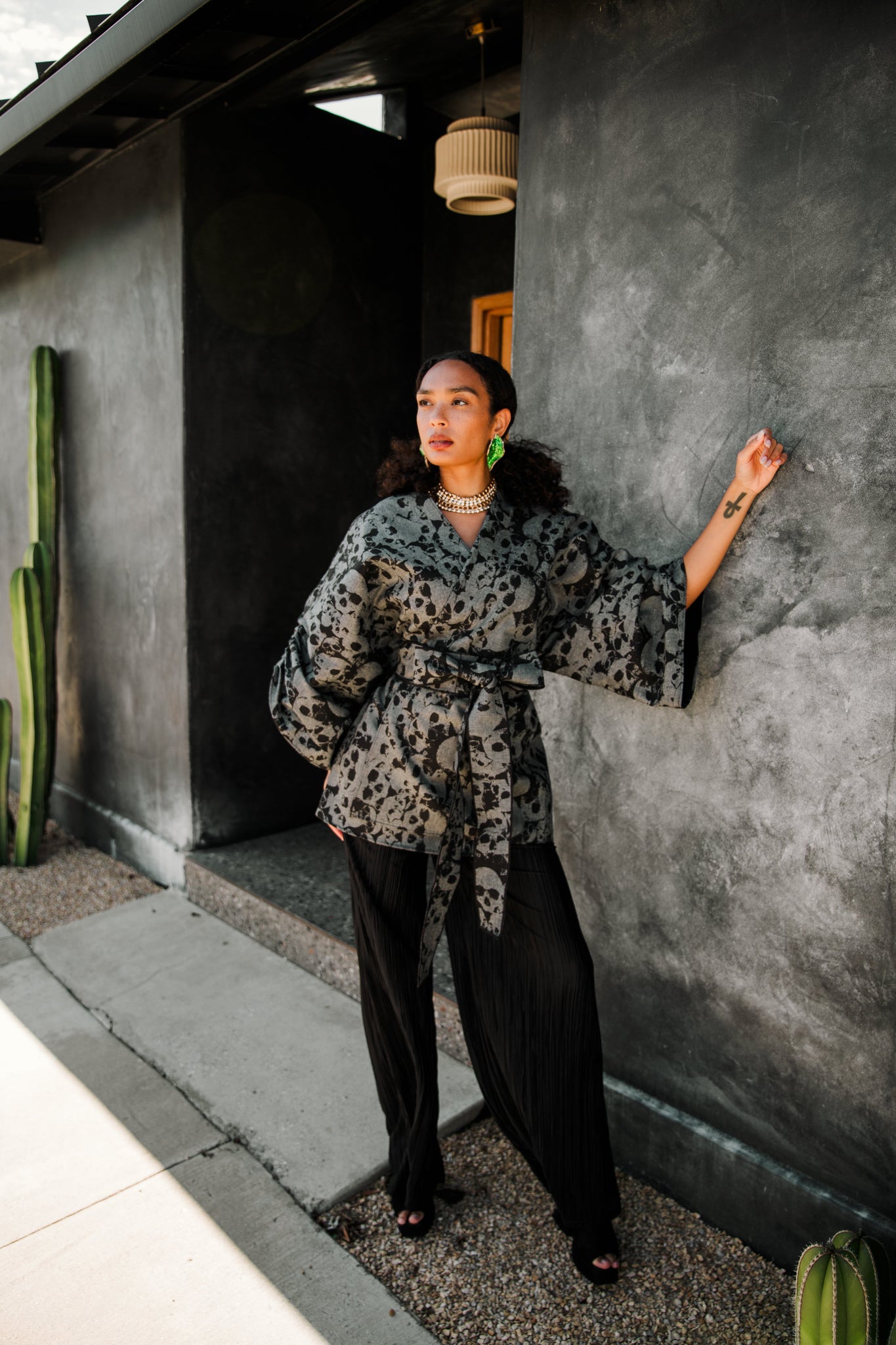 Bored with traditional blazers? The byVINNIK Theater Jacket offers a contemporary twist that breaks free from the monotony of uninspiring designs. Invest in the byVINNIK "Theater Jacket" and unlock the power to make an unforgettable impression wherever you go with its ruched sleeves, premium jacquard, and short length with a luxe sash tie belt. Step into the spotlight and seize the opportunity to shine, one elegant and stylish step at a time. Fits sizes S-3X+