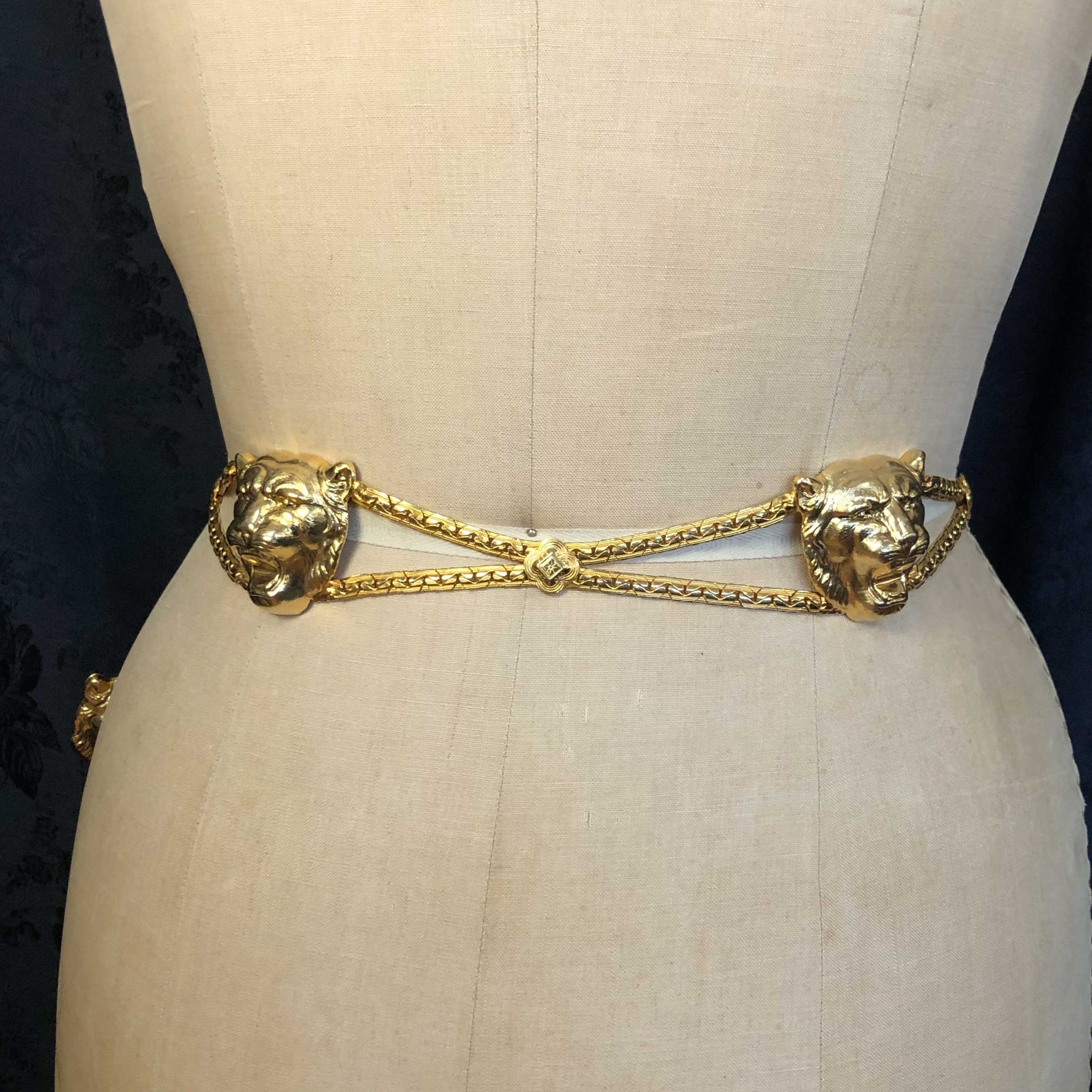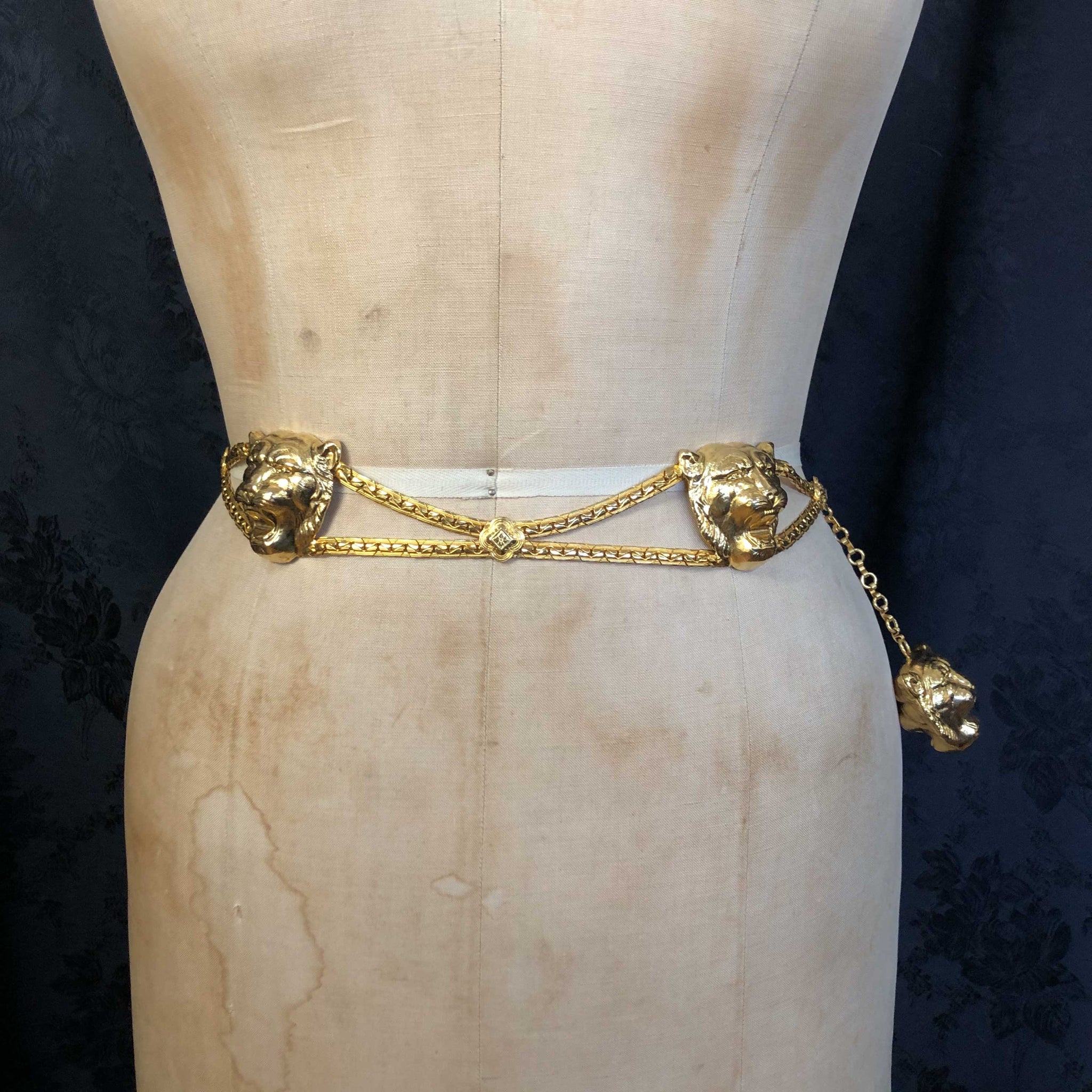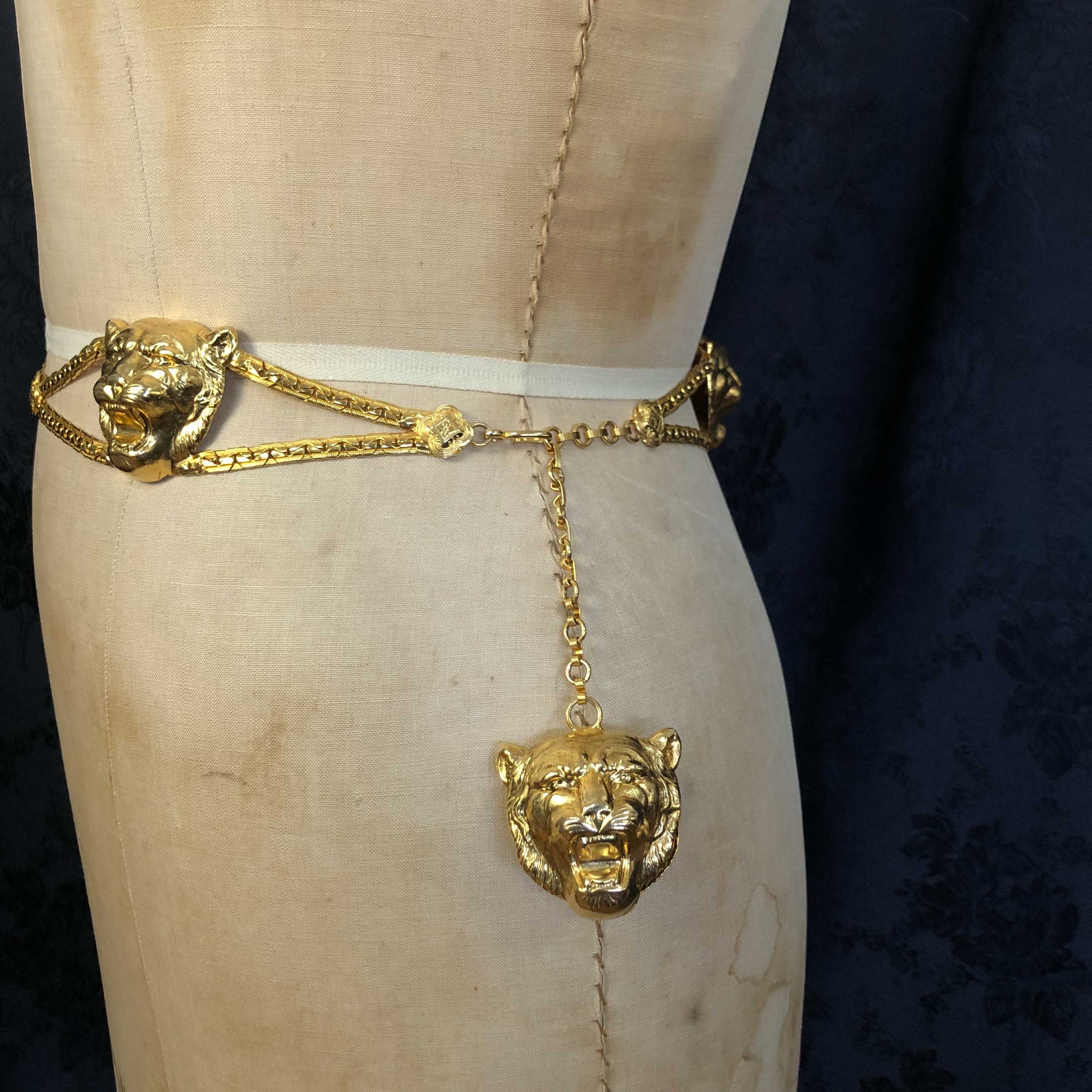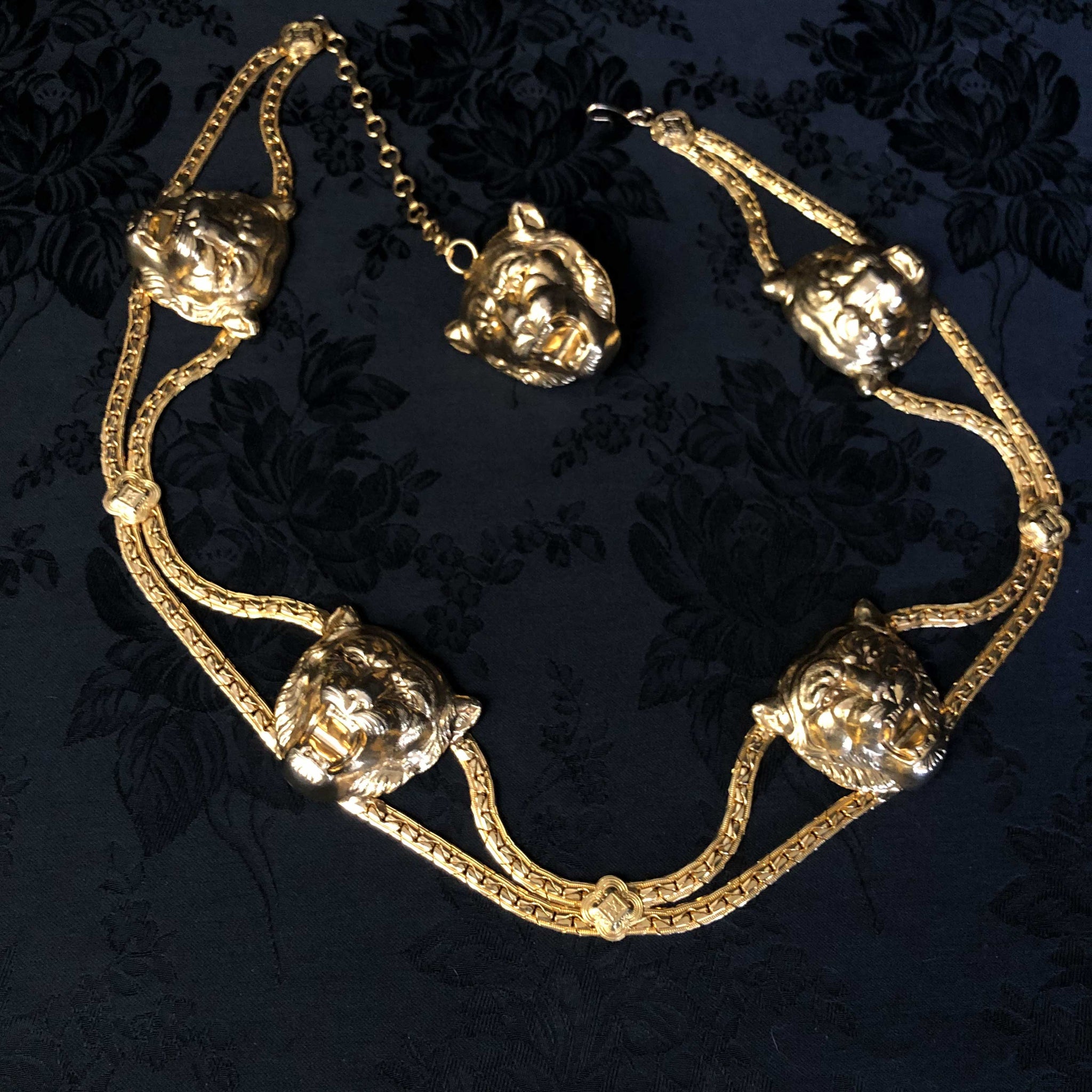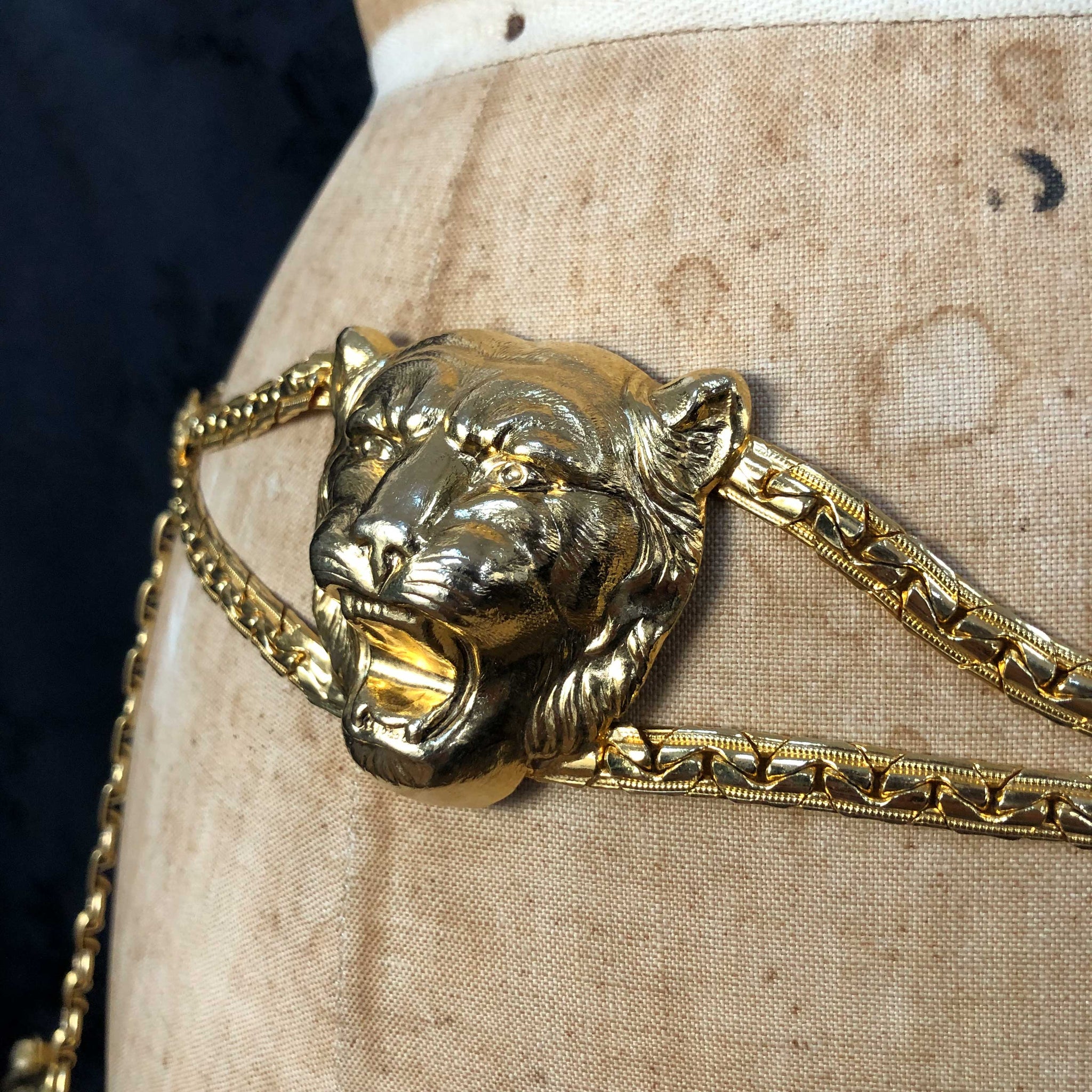 Ferocious 3D tiger faces dot this luxurious chain, linked with Dior-style medallions. A dangling double sided mama tiger roars from the end.