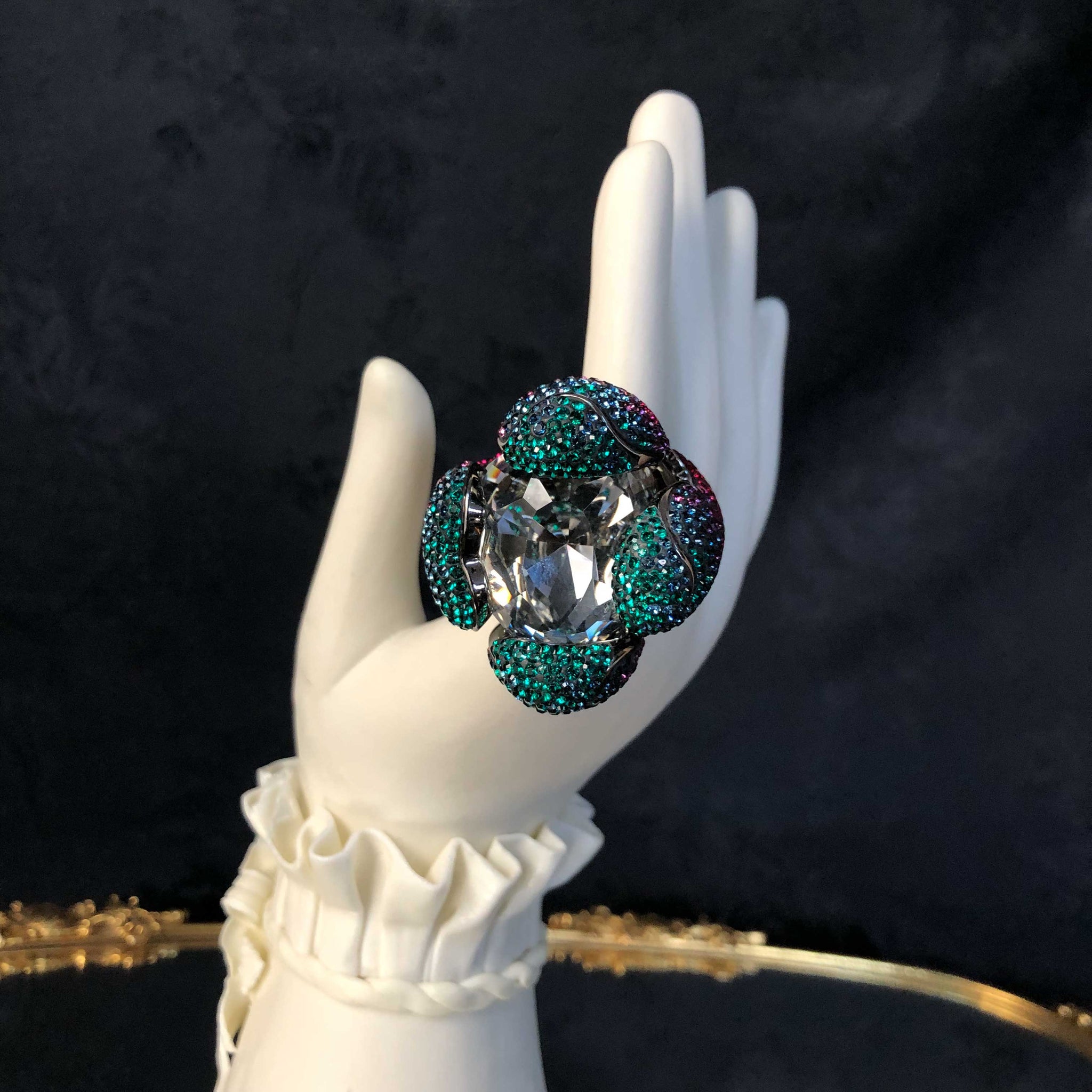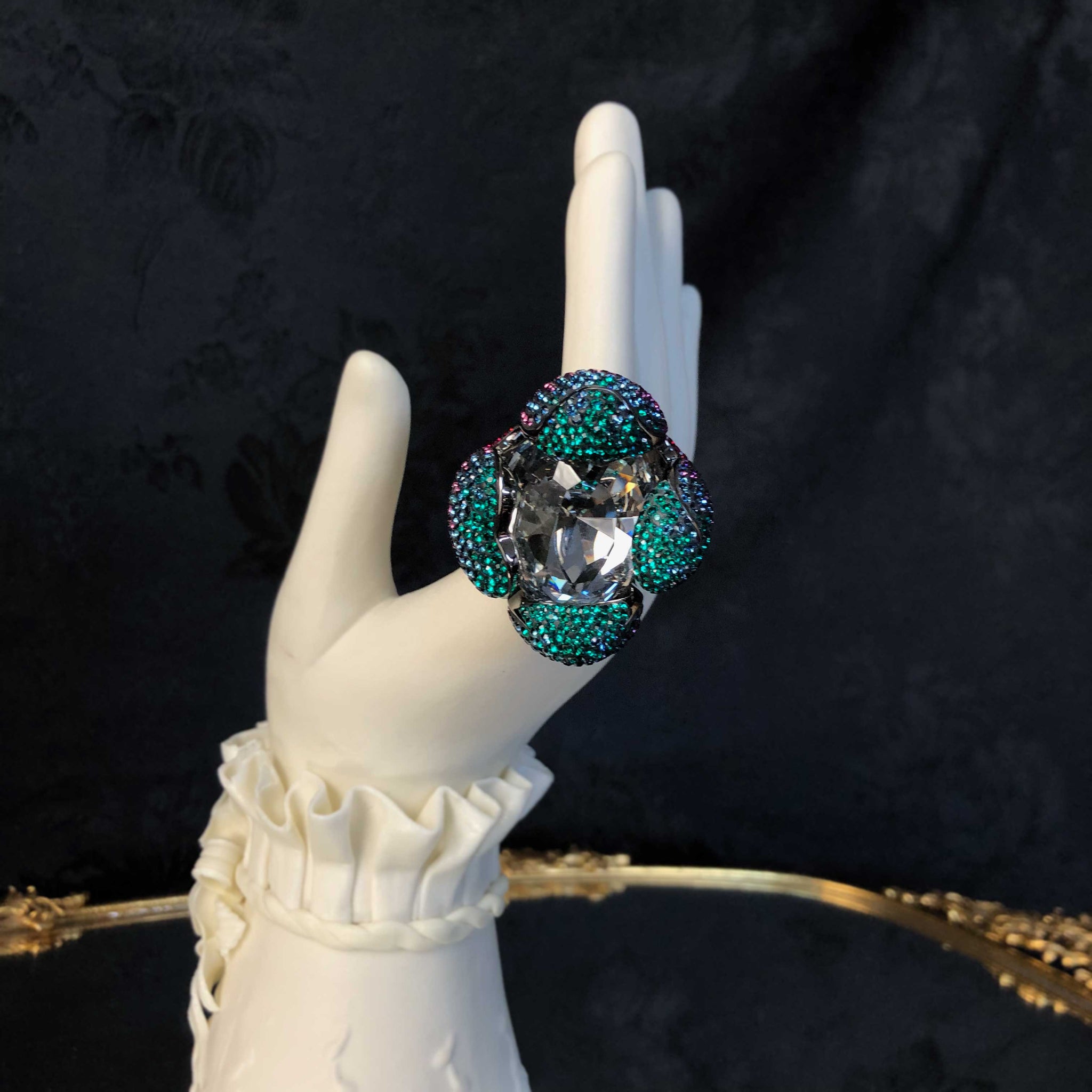 The most epic cocktail ring you can imagine! Fantastic ombre petals of magenta, purple and teal open up to a magnificent central stone the size of a quail egg. Just. Fucking. Fabulous.